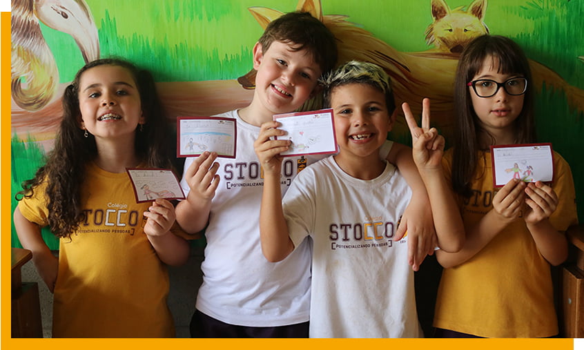 As aulas se iniciam no Infantil 3, são lúdicas e condizentes com a realidade e idade do estudante. No Stocco, o ensino de Língua Inglesa vai além da sala de aula. São utilizados espaços diferentes da escola – como a biblioteca e até a quadra poliesportiva -, o que dá ao nosso estudante instrumentos diferenciados para aprender em seu tempo e da sua maneira.